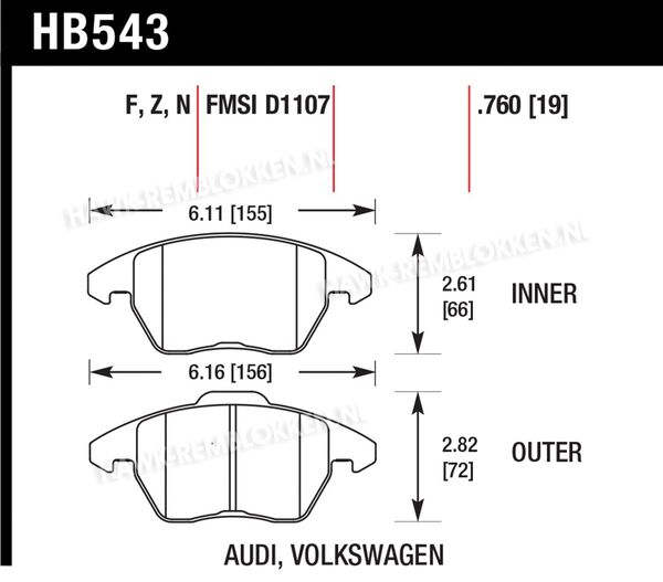 Let op: Onze website werkt met de data die we krijgen aangeleverd van de fabrikanten, in sommige gevallen (voornamelijk VAG) kan het zijn dat de blokken die u nodig heeft vermeld staan bij een ander model bv Cupra vs FR, of GTI vs TD. Ook kan het voorkomen dat er 2 mogelijkheden zijn op dat model auto, het verschil zit dan bv in de klem op de achterzijde, of minimale afwijkingen in de blokvorm. Het is daarom beter om van te voren na te kijken welke remblokken er daadwerkelijk op de auto zijn gemonteerd ! Controleer altijd de afbeelding en maatvoering op onze website met wat u denkt nodig te hebben, is dit afwijkend van wat er op uw model zit neem dan contact met ons op. Wij zoeken het juiste artikel graag voor u uit, op kenteken krijgen wij ook vaak 2-3 opties, maar als wij een foto van het blok krijgen kunnen wij aangeven welk remblok u nodig heeft.