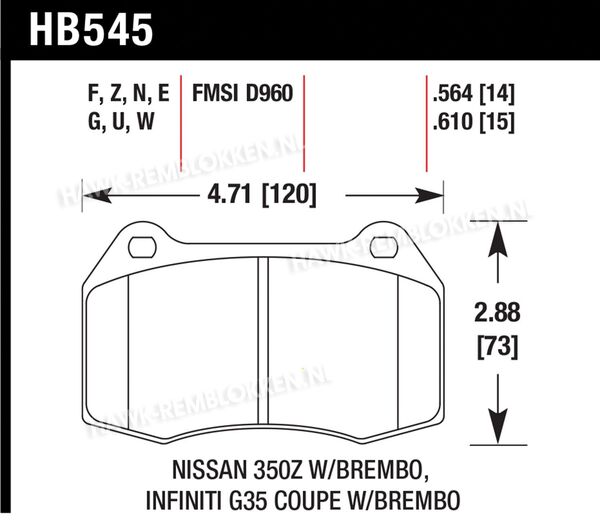 | NISSAN | Skyline (V35) | 3,5 Manual | 2001-2004 | Front (Brembo) | DTC-60 | HB545G.663 |