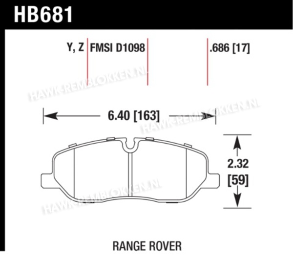 Merk Model Uitvoering Bouwjaar Plaats Remvoering LAND ROVER Discovery 3 2,7 (Turbo Diesel) (190PK) 2004-2009 Front (TRW) Performance Ceramic HB681Z.686 LAND ROVER Discovery 3 4,4 (300PK) 2004-2008 Front (TRW) Performance Ceramic HB681Z.686 LAND ROVER Range Rover (L322) 2,9 (Turbo Diesel) From Vin 6A0000001 2005-2007 Front (TRW) Performance Ceramic HB681Z.686 LAND ROVER Range Rover (L322) 4,4 From Vin 6A0000001 2005-2007 Front (TRW) Performance Ceramic HB681Z.686 LAND ROVER Range Rover Sport (L320) 4,4 2005-2006 Front (TRW) Performance Ceramic HB681Z.686 LAND ROVER Range Rover Sport (L320) 4,4 2007-2008 Front (TRW) Performance Ceramic HB681Z.686 LAND ROVER Range Rover Sport (L320) 2,7 (Turbo Diesel) 2005-2006 Front (TRW) Performance Ceramic HB681Z.686 LAND ROVER Range Rover Sport (L320) 2,7 (Turbo Diesel) 2007-2009 Front (TRW) Performance Ceramic HB681Z.686 ReviewsCross reference:Send a friendHeeft u vragen over of ervaring met dit product? En wilt u dat met anderen delen? Plaats dan hier uw review. Voor alle niet-productgerichte vragen of reacties verwijzen wij u graag naar onze FAQ of naar de klantenservice.