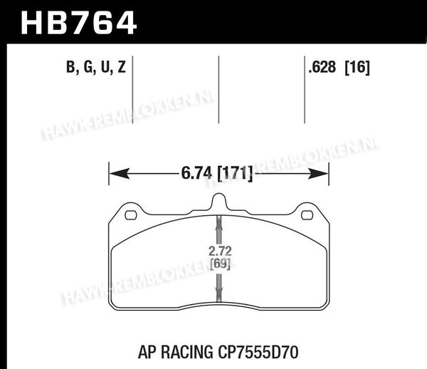 | AP Racing | CP7555D70 | 16mm | All | Racing Caliper | HP Plus | HB764N.628 |