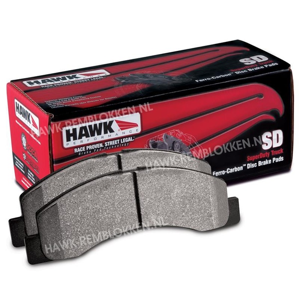 For over 25 years, Hawk Performance has developed friction solutions for some of the largest trucks on the planet. Our products are used by both OE and aftermarket companies servicing the mining, construction, military and commercial truck markets, and Hawk's SuperDuty compound features that same high performance, severe-duty friction technology. The unique Ferro-Carbon material in SD disc brake pads delivers extremely high fade resistance, with superior high-temperature rotor and brake pad wear. This compound has been engineered for Class 2 and higher, on-highway, commercial-grade vehicles. This product is not recommended for personal or recreational trucks and SUVs.- Technology engineered for use in heavy-duty on/off highway and military applications