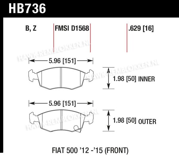 Front (ATE) - FIAT Punto Evo (2010-2012) REMBLOKKEN HAWK PERFORMANCE HB736E.629