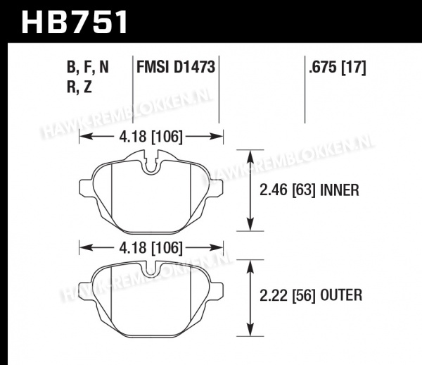 Rear (TRW) - BMW 5 Series (G30) (520) (2017-2023) REMBLOKKEN HAWK PERFORMANCE HB751N.675